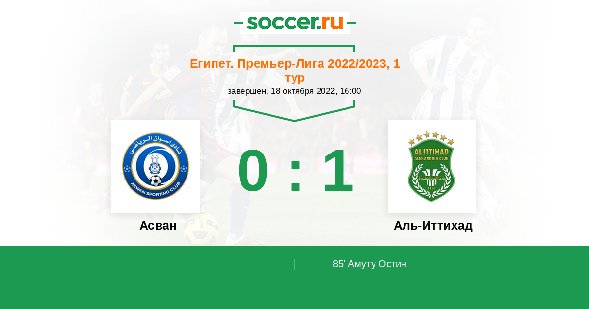 Асван - Аль-Иттихад: обзор матча 18 октября 2022