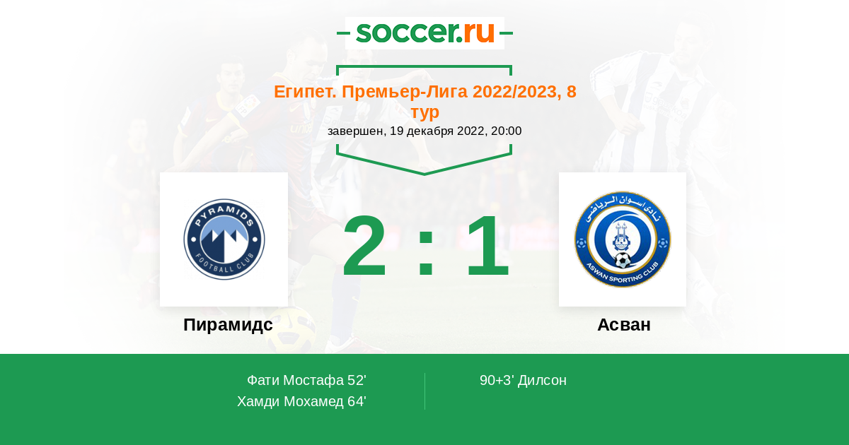 Пирамидс - Асван: обзор матча 19 декабря 2022