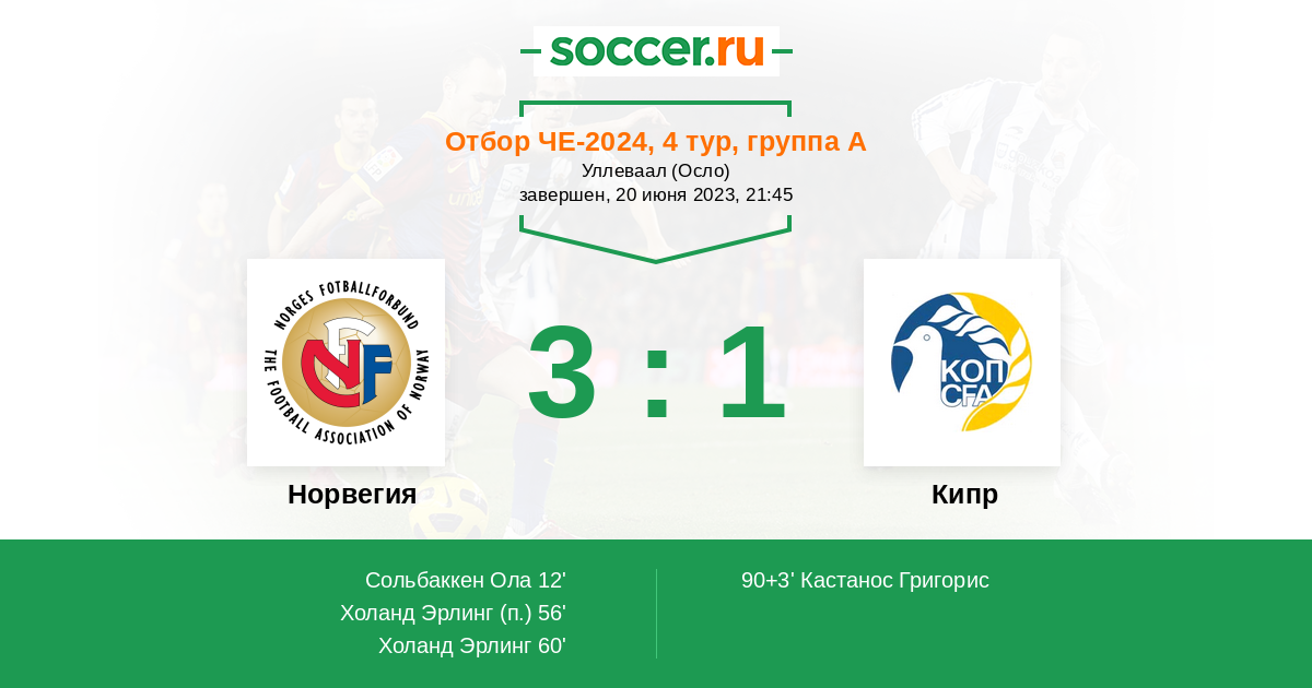 Норвегия - Кипр: обзор матча 20 июня 2023