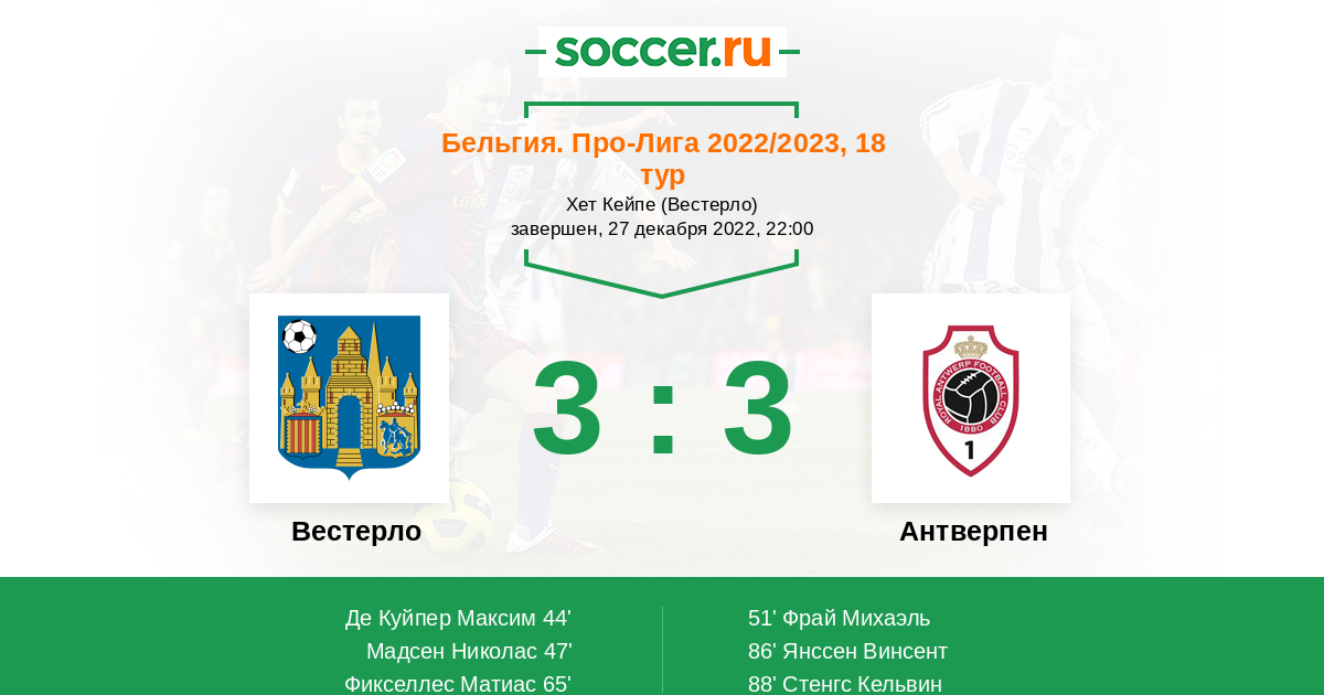 Антверпен | 34 | 22 | 6 | 6 | 19 | 59:26 | 72 |