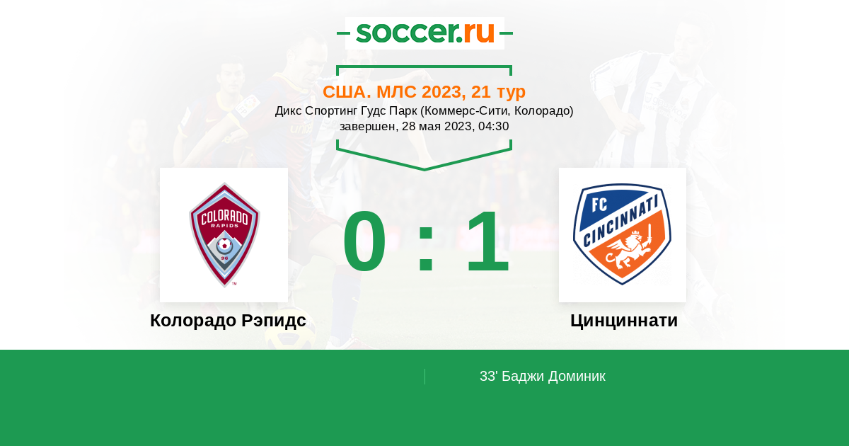 Колорадо Рэпидс - Цинциннати: обзор матча 28 мая 2023