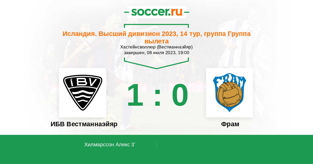 ИБВ Вестманнаэйяр - Фрам: обзор матча 8 июля 2023