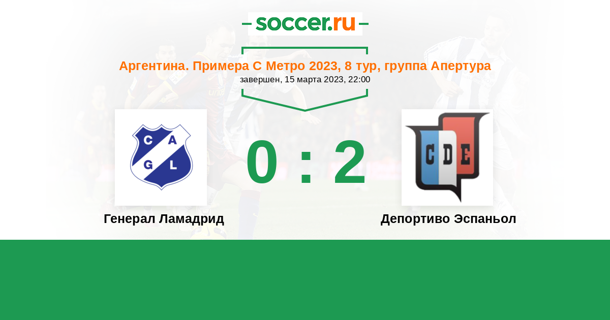 Генерал Ламадрид - Депортиво Эспаньол: обзор матча 15 марта 2023