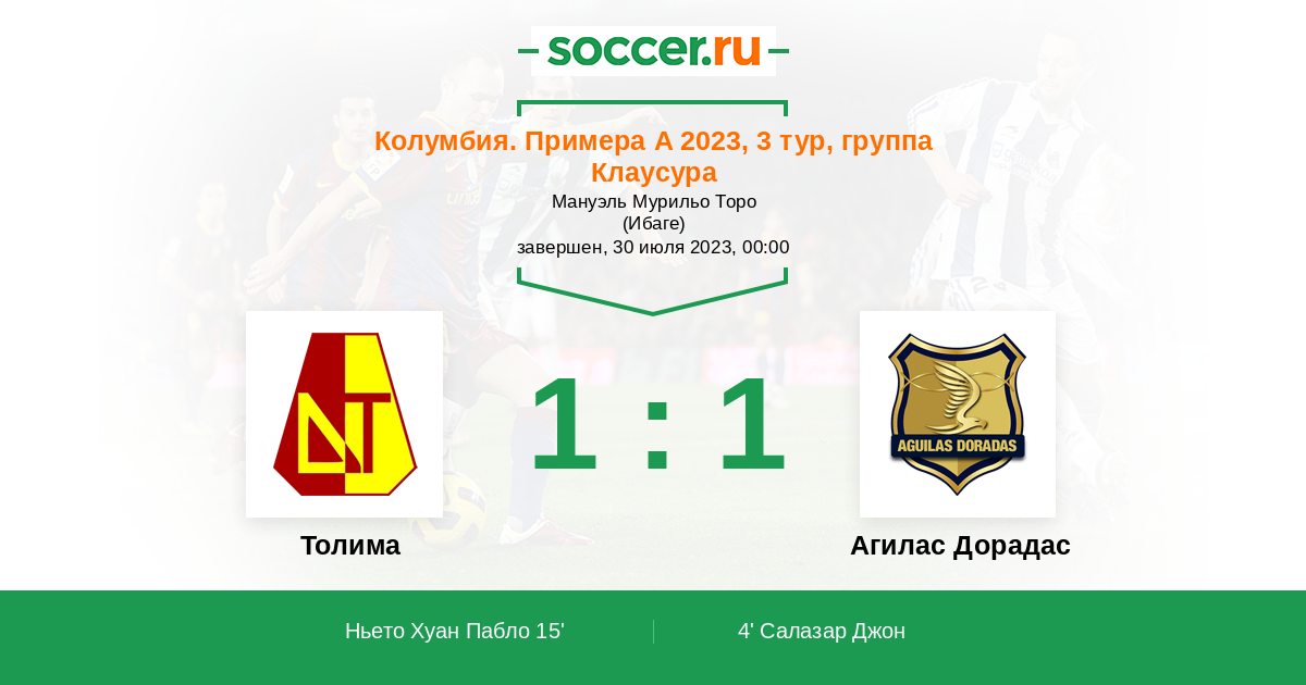 Толима - Агилас Дорадас: обзор матча 30 июля 2023