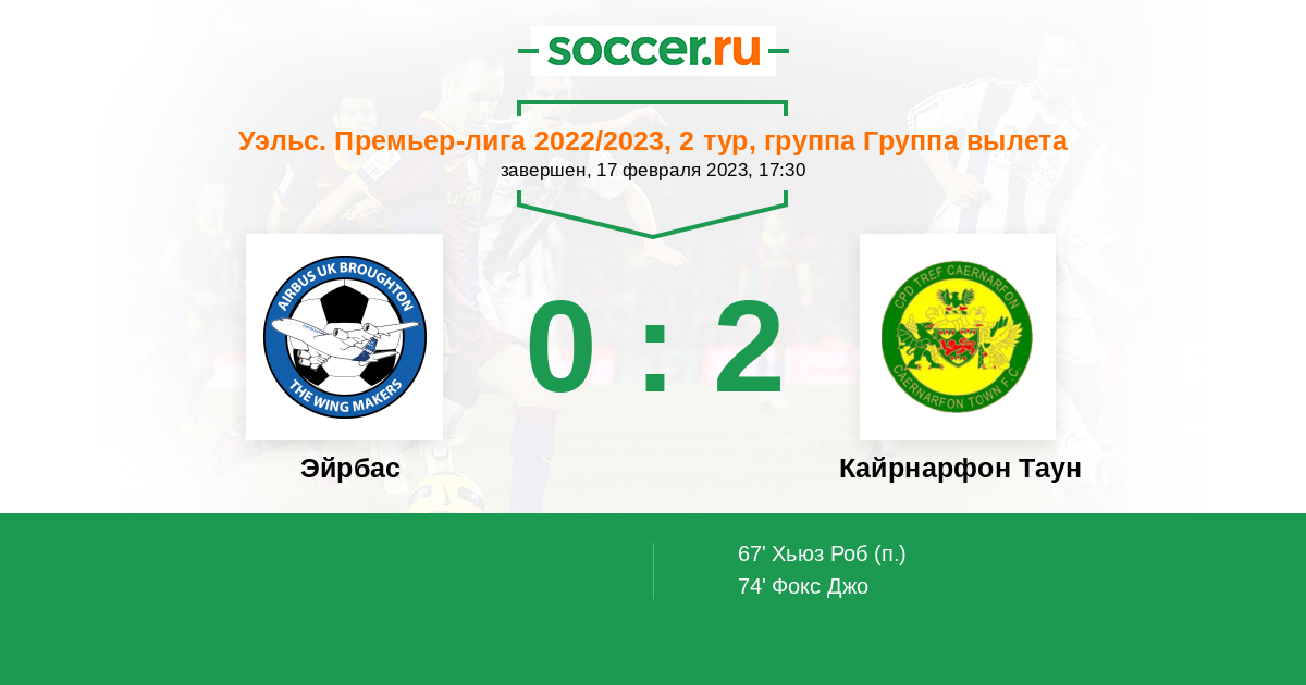 Кайрнарфон Таун | 22 | 8 | 1 | 13 | 4 | 33:41 | 25 |