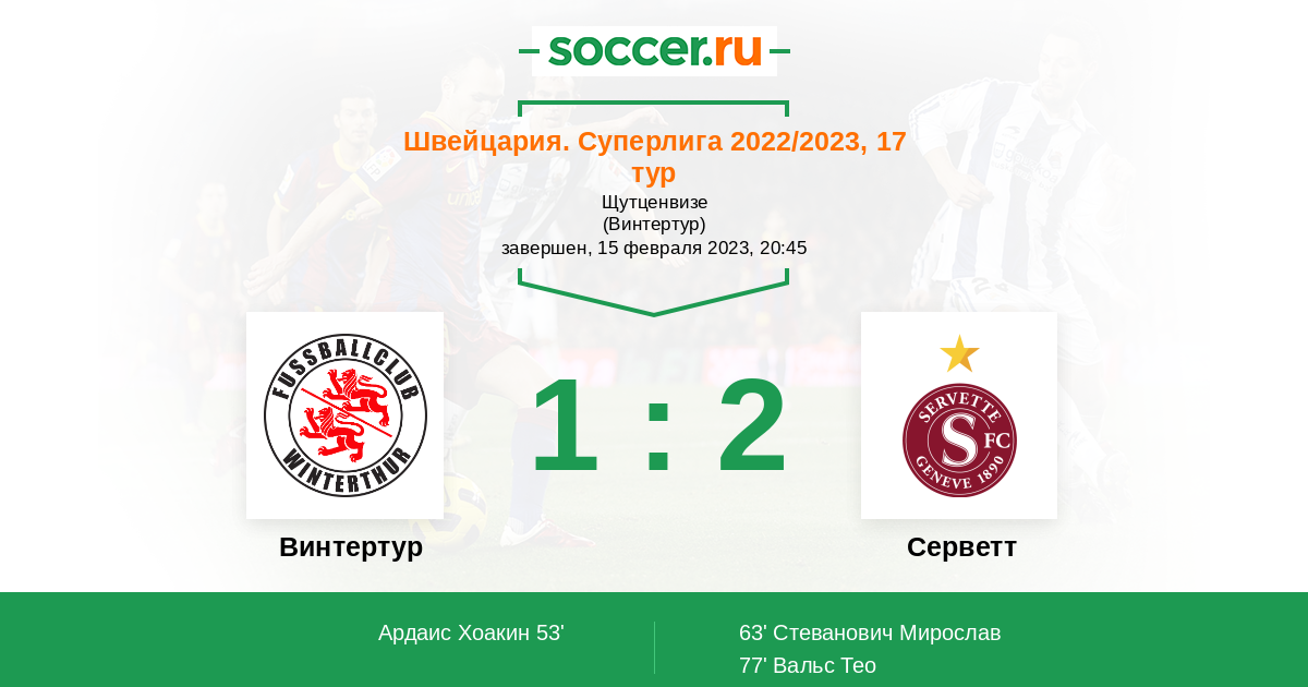 Винтертур - Серветт: обзор матча 15 февраля 2023