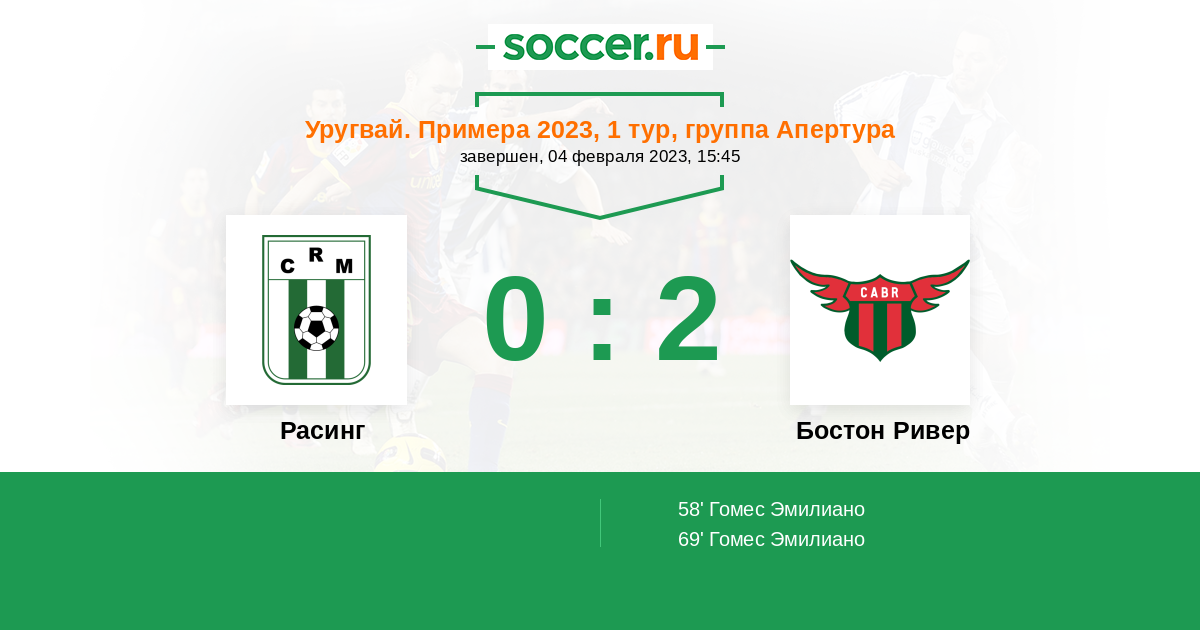 Расинг - Бостон Ривер: обзор матча 4 февраля 2023