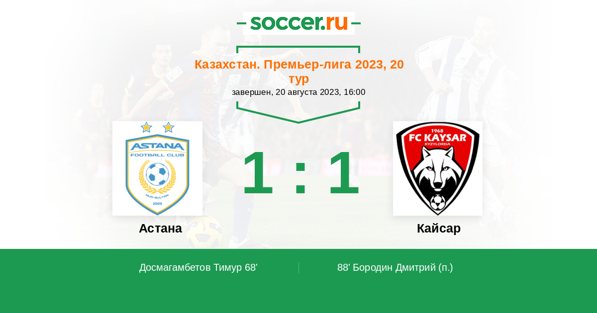 Астана - Кайсар: обзор матча 20 августа 2023