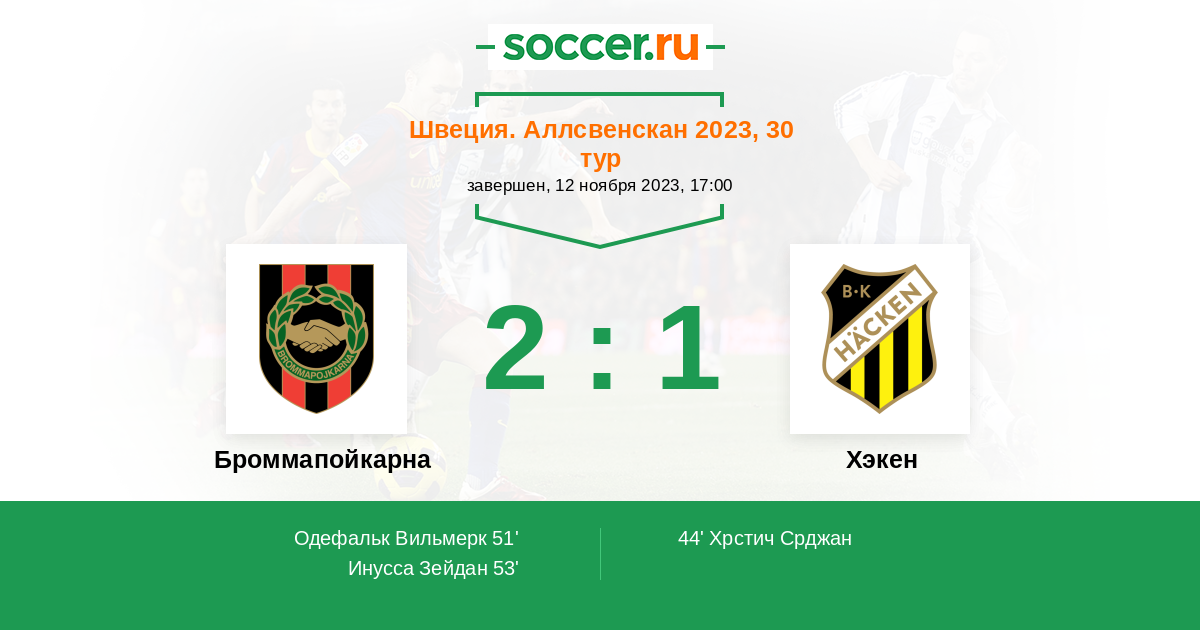 Броммапойкарна | 30 | 10 | 3 | 17 | 6 | 40:53 | 33 |
