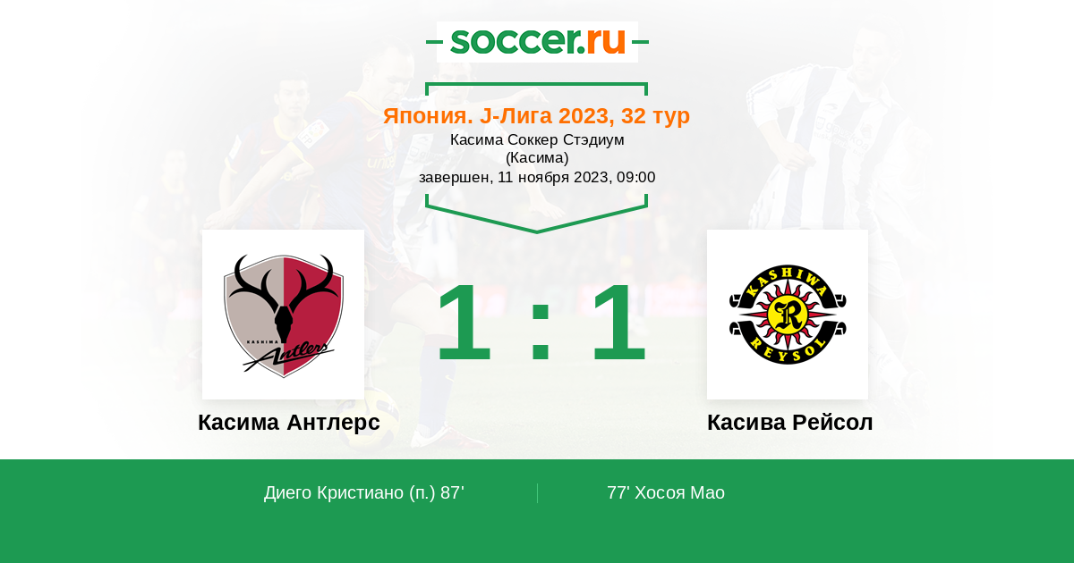 Касима Антлерс - Касива Рейсол: обзор матча 11 ноября 2023