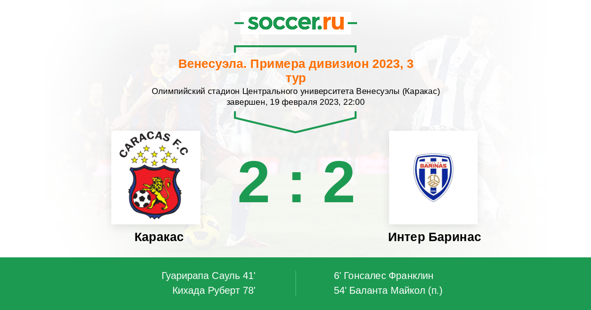 Каракас 6 2 3 1 4 5:4 9