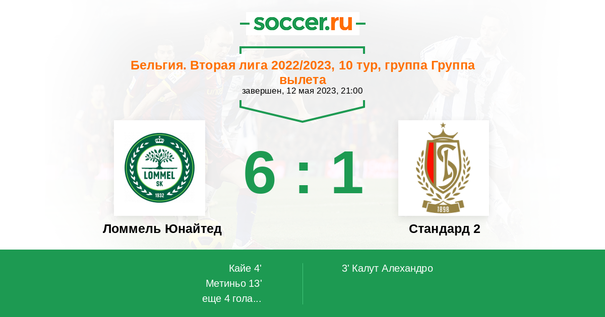 Ломмель Юнайтед | 22 | 10 | 2 | 10 | 5 | 33:36 | 32 |