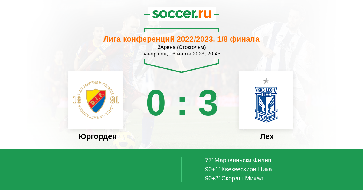 Юргорден - Лех: обзор матча 16 марта 2023