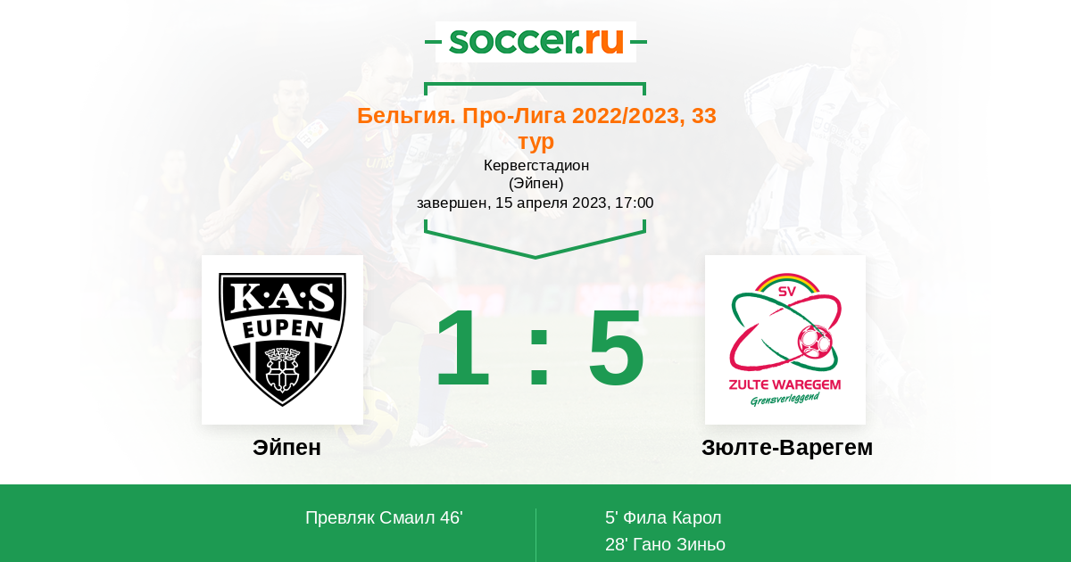 Эйпен - Зюлте-Варегем: обзор матча 15 апреля 2023