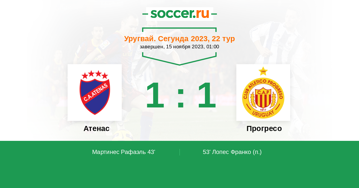 Атенас - Прогресо: обзор матча 15 ноября 2023
