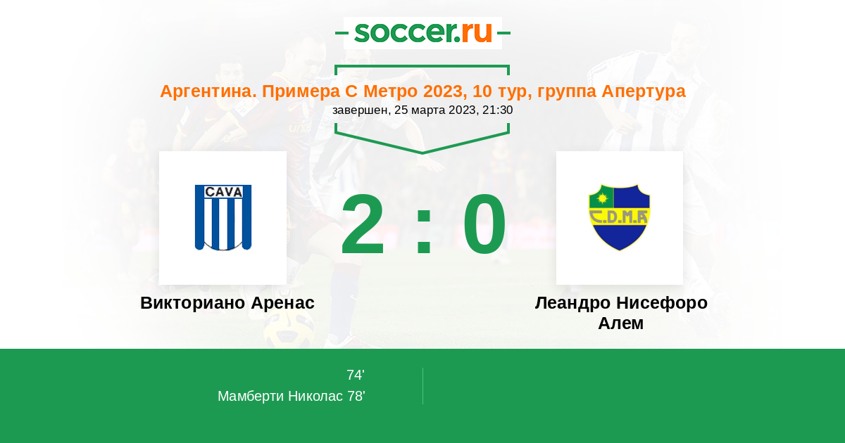 Викториано Аренас - Леандро Нисефоро Алем: обзор матча 25 марта 2023