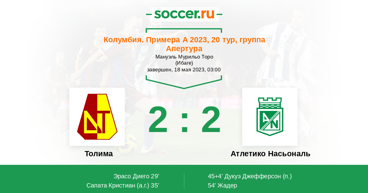 Толима - Атлетико Насьональ: обзор матча 18 мая 2023