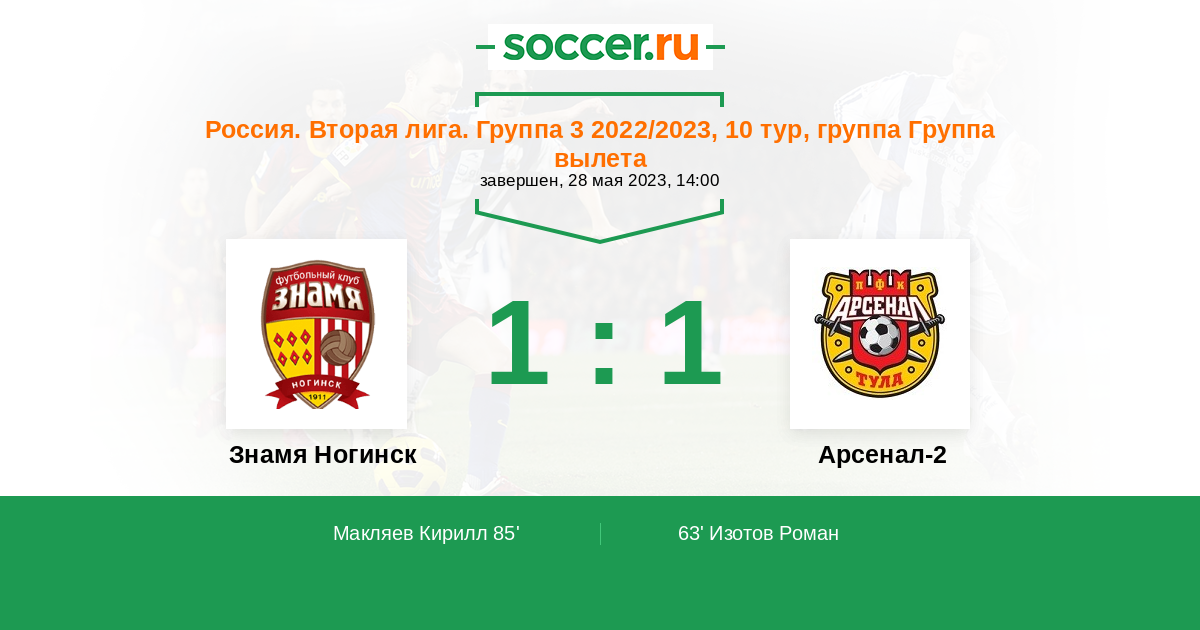 Знамя Ногинск - Арсенал-2: обзор матча 28 мая 2023