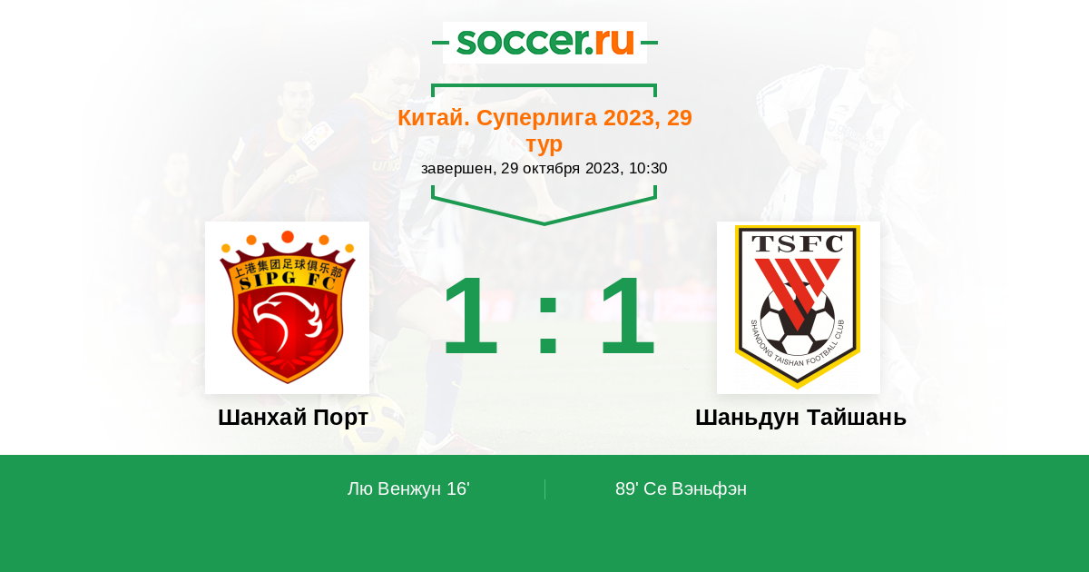 Шанхай Порт - Шаньдун Тайшань: обзор матча 29 октября 2023