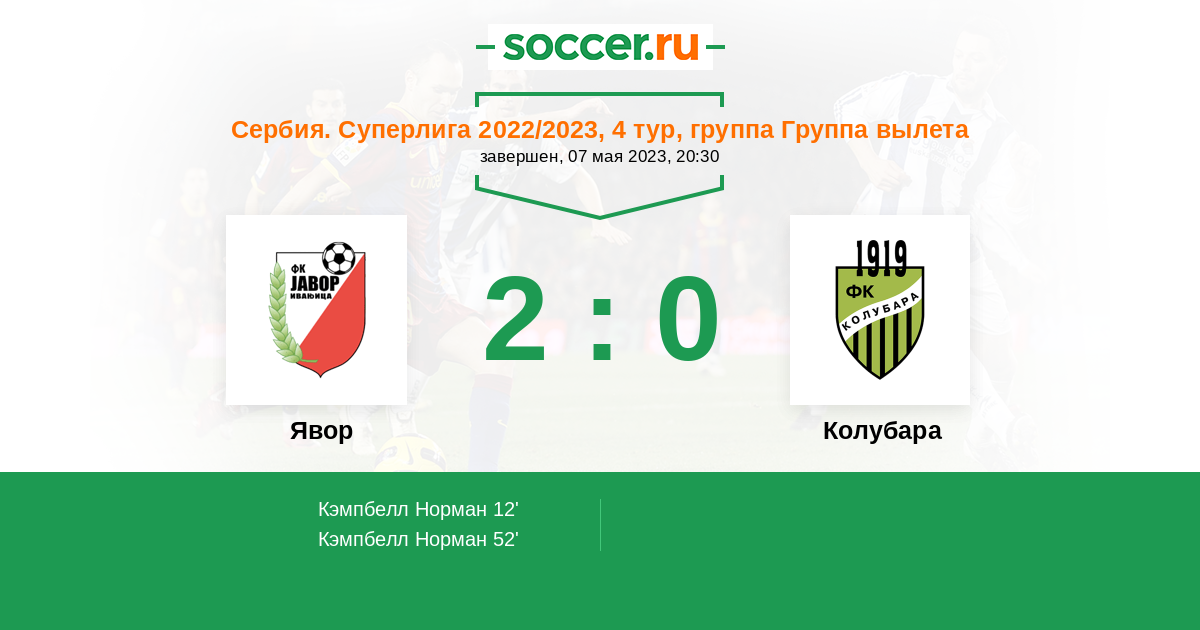 Явор - Колубара: обзор матча 7 мая 2023