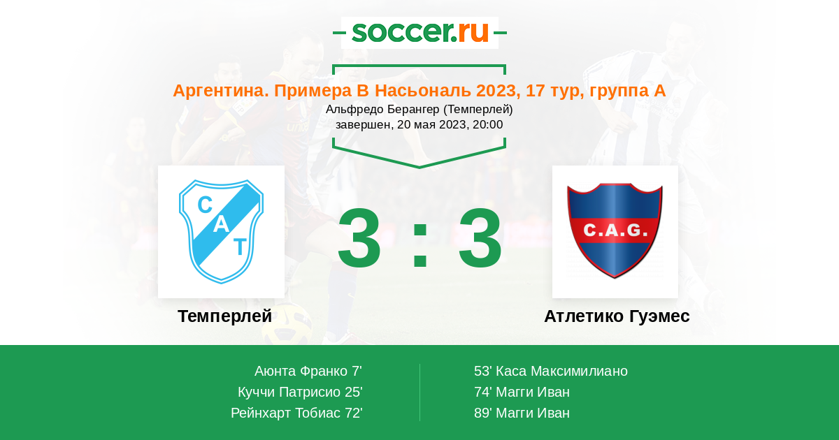 Темперлей - Атлетико Гуэмес: обзор матча 20 мая 2023