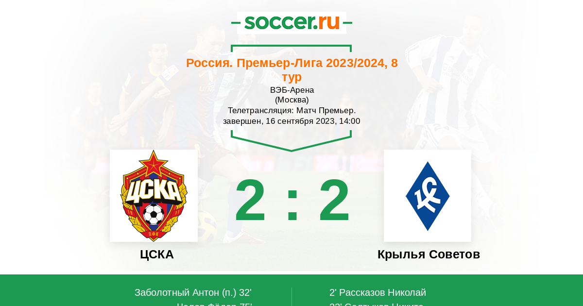 ЦСКА - Крылья Советов турнирная таблица