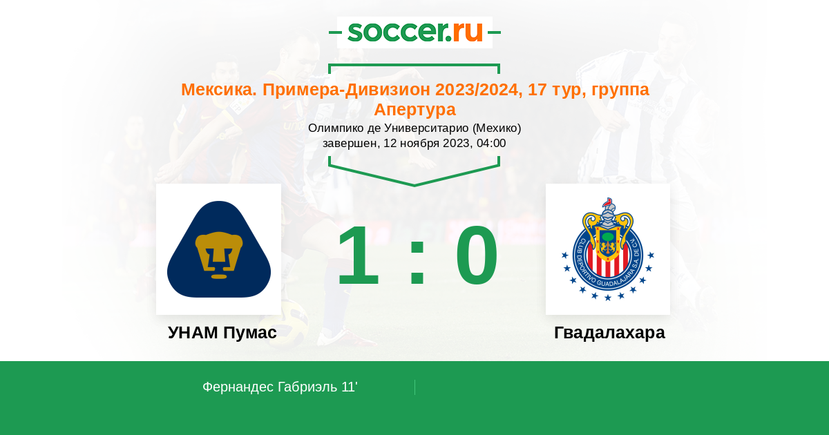 УНАМ Пумас - Гвадалахара: обзор матча 12 ноября 2023