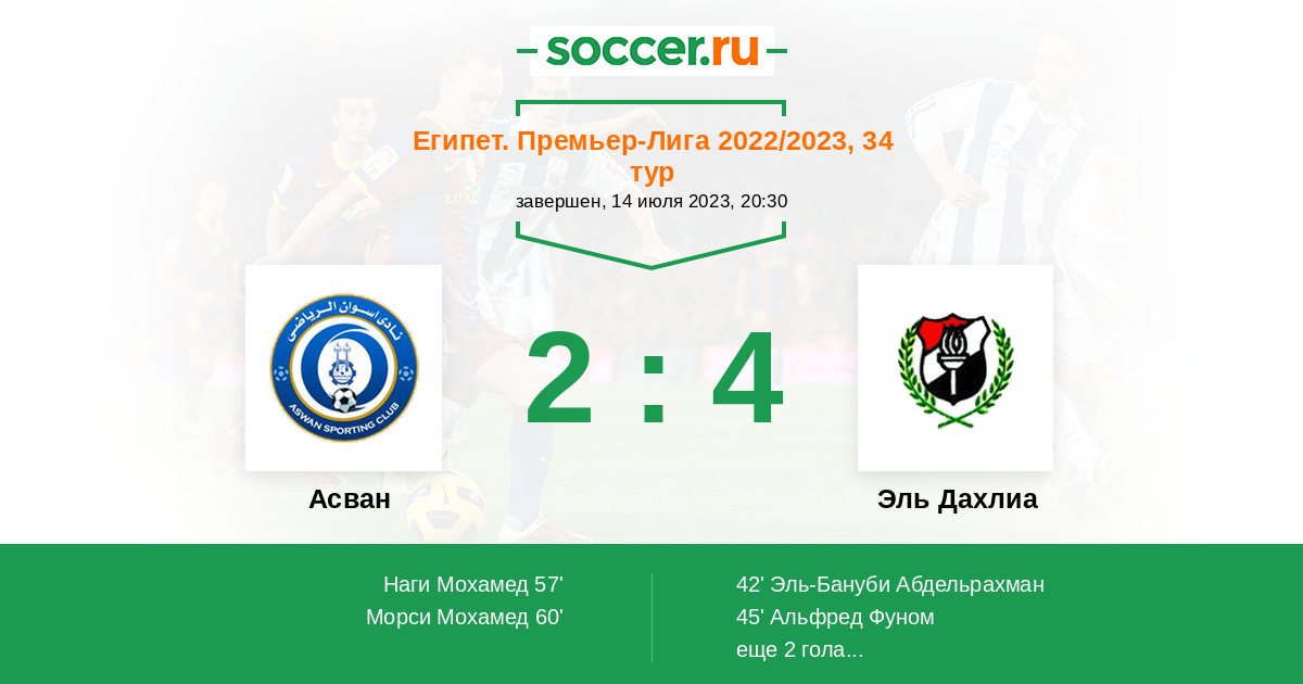 | 18. | Эль Дахлиа | 17 | 2 | 8 | 7 | 4 | 14:21 | 14 |