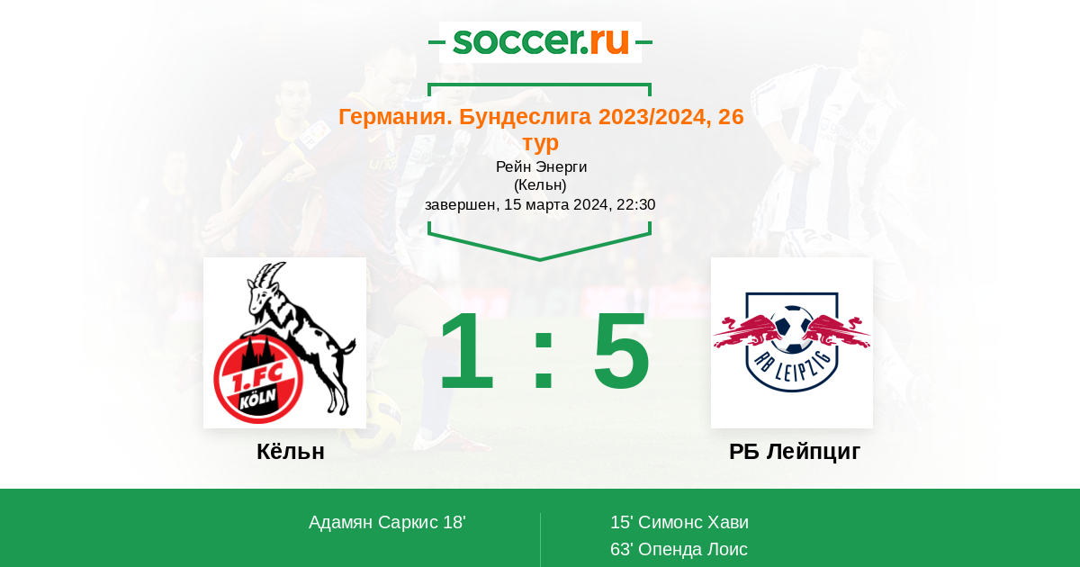 мой прогноз победа лейпцига в первом тайме с минимальным счётом и во вором тайме удвоит преимущество и наконец Кёльн забьёт гол престижа.