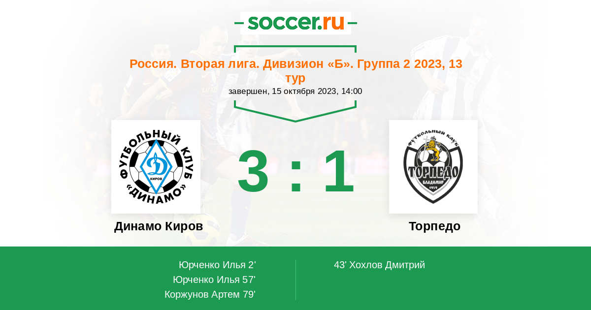Динамо Киров - Торпедо: обзор матча 15 октября 2023