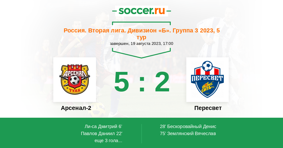 | 2. | Арсенал-2 | 8 | 6 | 2 | 0 | 3 | 18:8 | 20 |