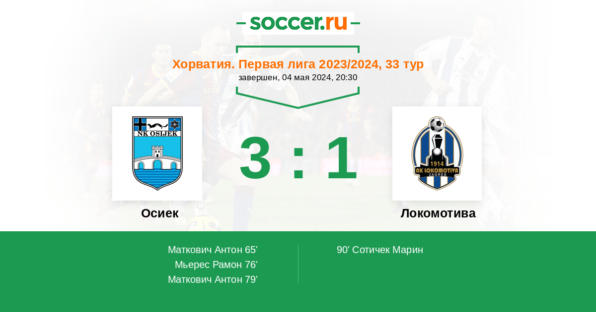 Осиек - Локомотива: обзор матча 4 мая 2024