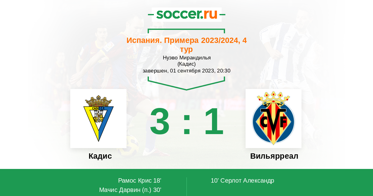 Кадис - Вильярреал: обзор матча 1 сентября 2023