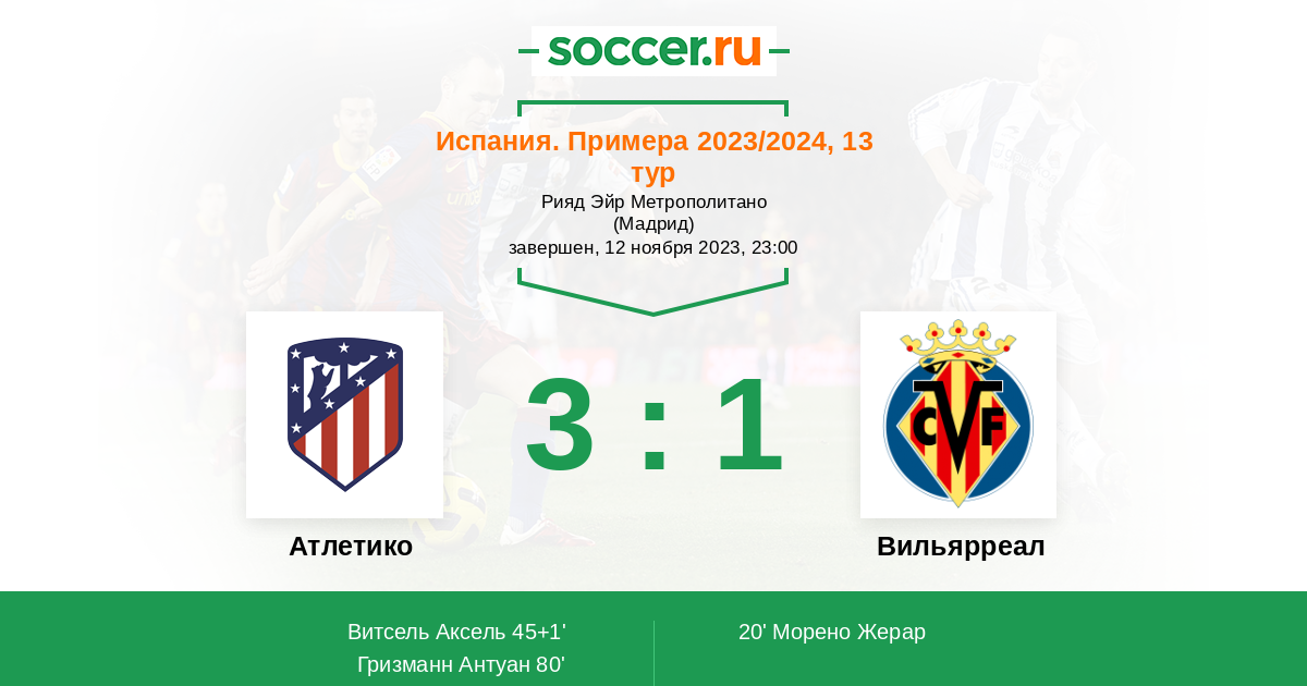 Атлетико - Вильярреал: обзор матча 12 ноября 2023