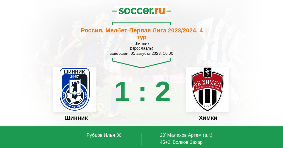 Шинник - Химки: обзор матча 5 августа 2023
