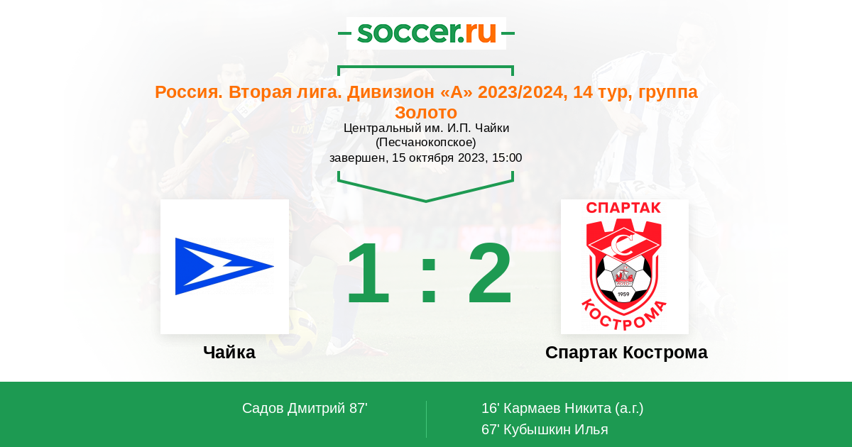 Чайка - Спартак Кострома: обзор матча 15 октября 2023