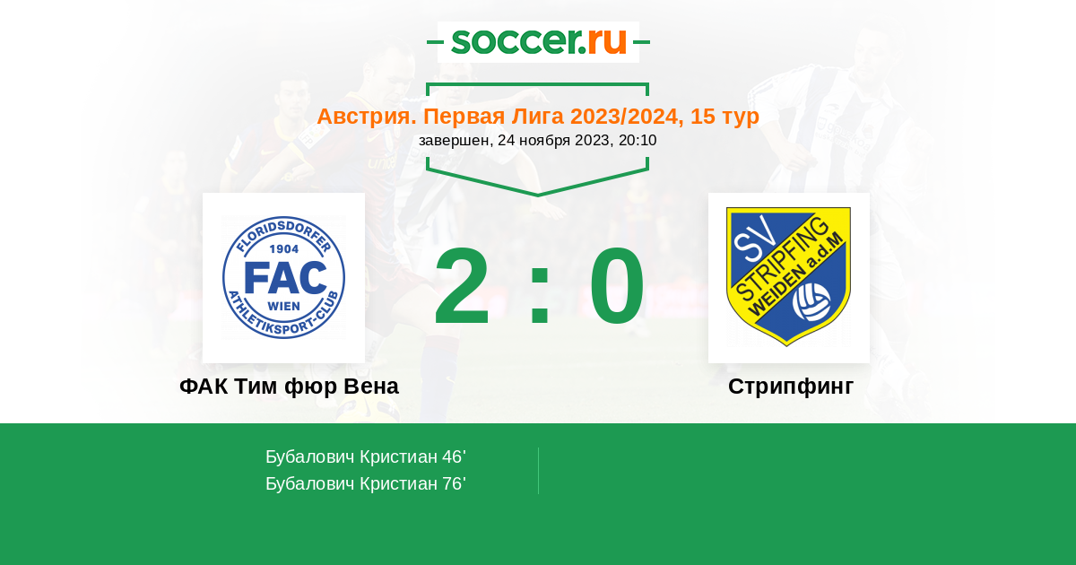 ФАК Тим фюр Вена - Стрипфинг: обзор матча 24 ноября 2023