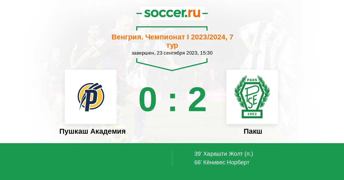 Пушкаш Академия - Пакш: обзор матча 23 сентября 2023