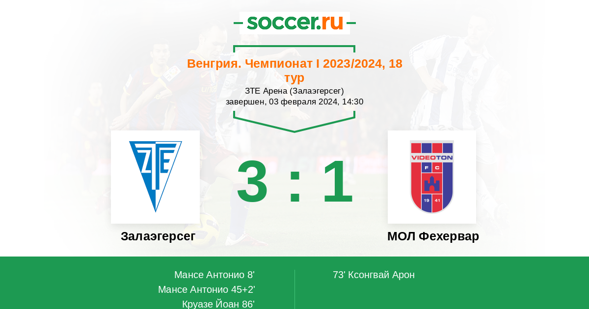 Залаэгерсег - МОЛ Фехервар: обзор матча 3 февраля 2024