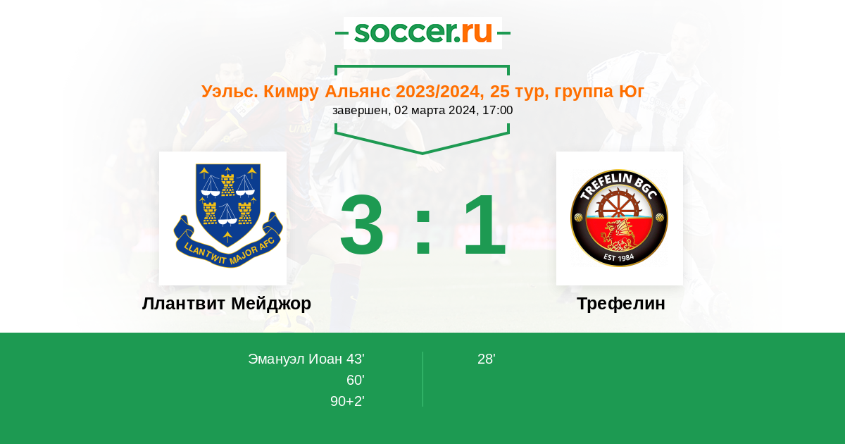 Ллантвит Мейджор - Трефелин: обзор матча 2 марта 2024