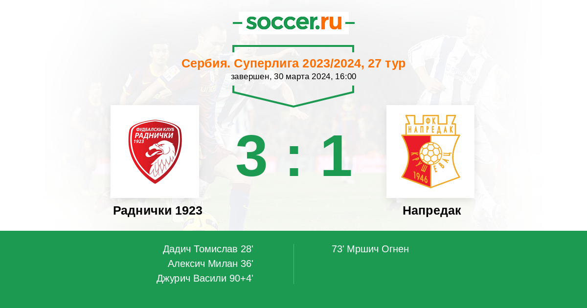 Раднички 1923 - Напредак: обзор матча 30 марта 2024
