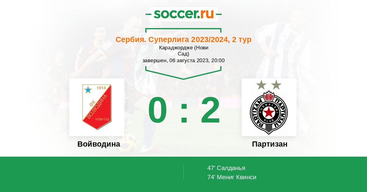 Войводина - Партизан: обзор матча 6 августа 2023