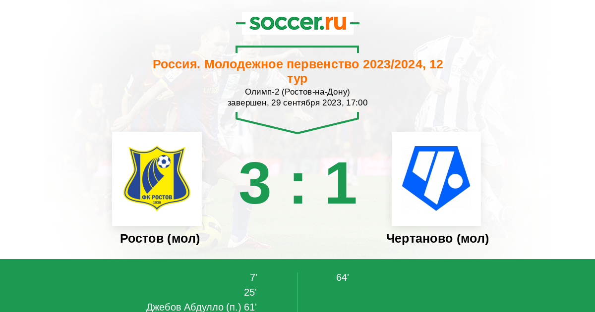 Ростов (мол) - Чертаново (мол): обзор матча 29 сентября 2023