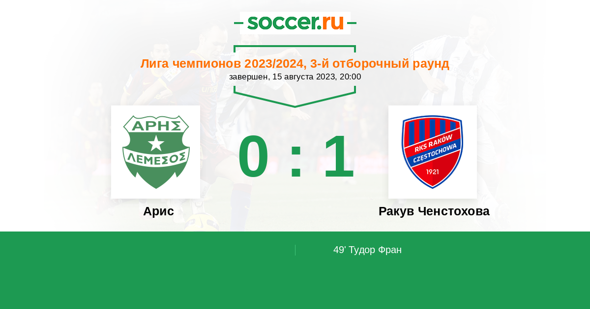 Арис - Ракув Ченстохова: обзор матча 15 августа 2023