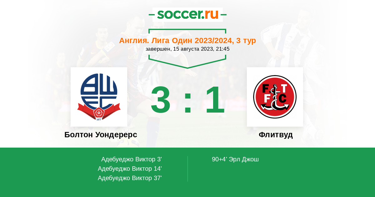 Болтон Уондерерс - Флитвуд: обзор матча 15 августа 2023