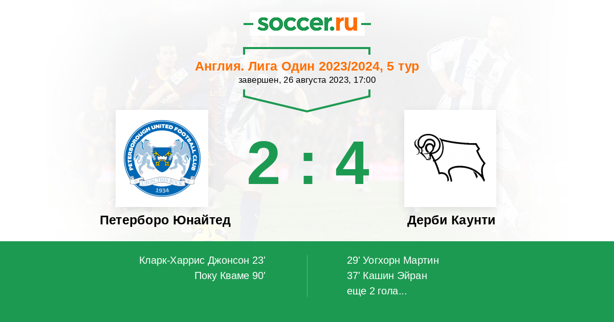 Петерборо Юнайтед - Дерби Каунти: обзор матча 26 августа 2023