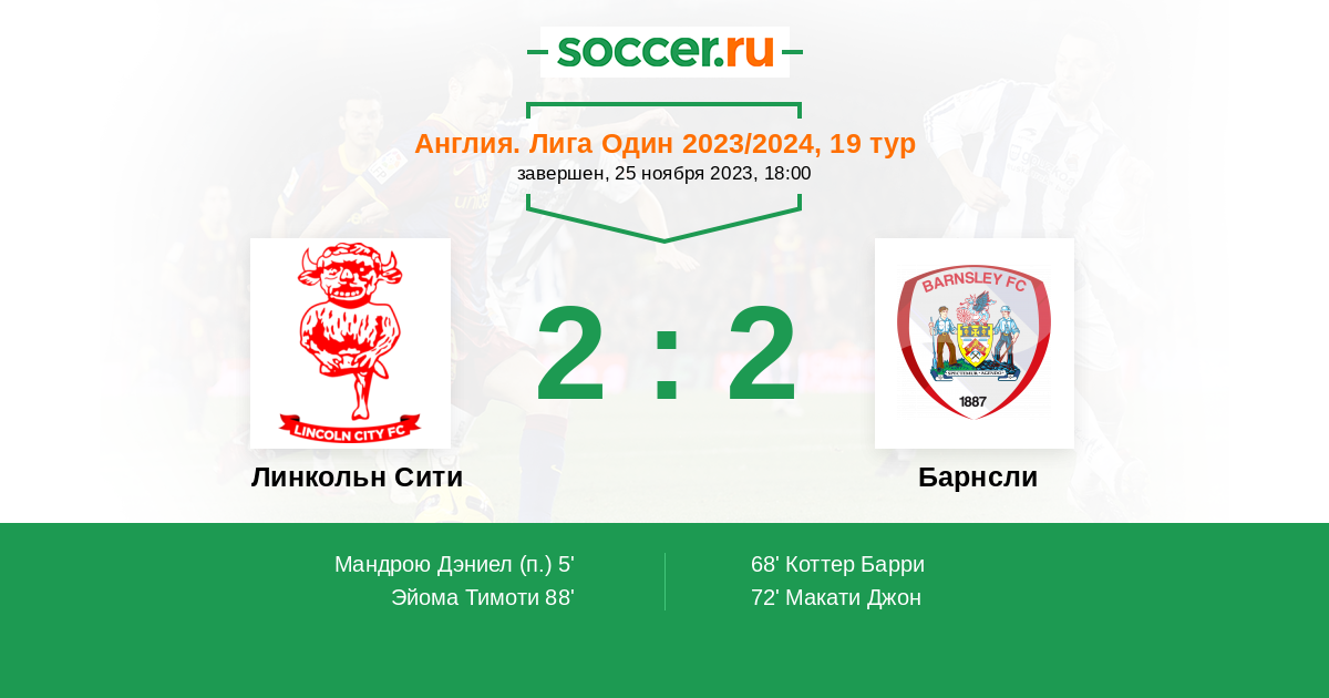 Линкольн Сити - Барнсли: обзор матча 25 ноября 2023