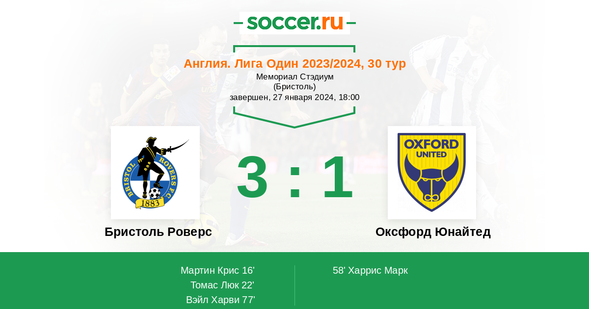 Бристоль Роверс - Оксфорд Юнайтед: обзор матча 27 января 2024