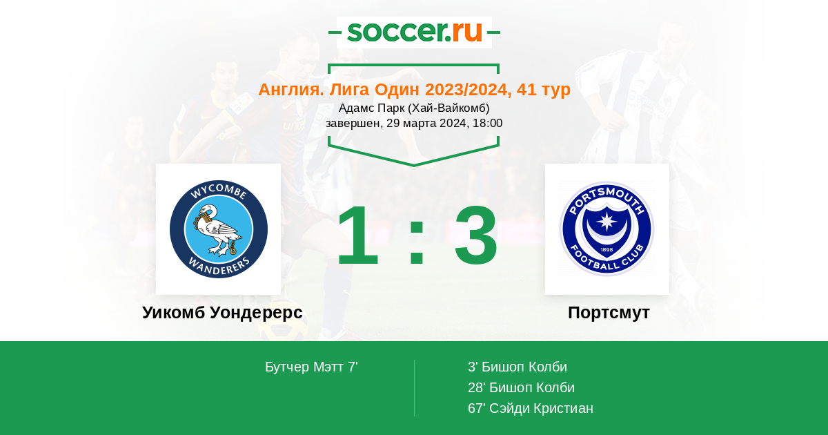 | 1. | Портсмут | 23 | 13 | 8 | 2 | 14 | 35:14 | 47 |
