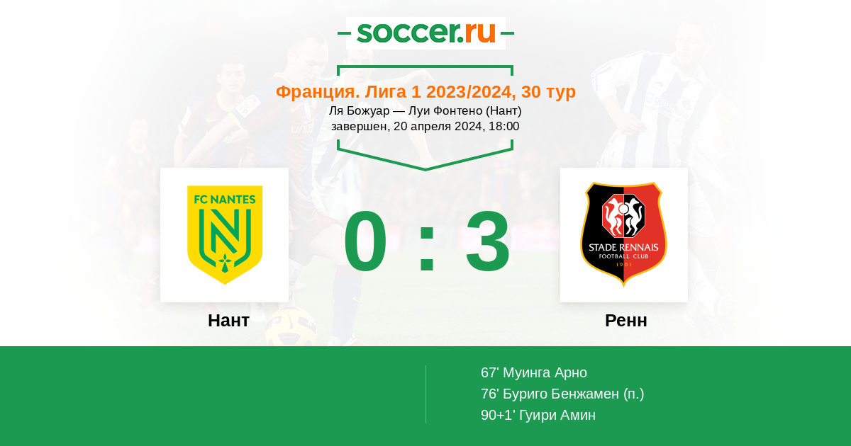 Нант - Ренн: обзор матча 20 апреля 2024